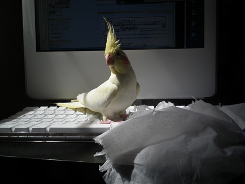 おひさしプリティー、 (#^∀^#)ぴーちゃんです**♪ プリティーと言うより、 (= ̄∨ ̄=)渋い撮影となりました☆ **\(#^∀^#)/**キーボードとテッシュ遊びが大好きです☆ こーなったらモォー、 ┌(−_−;┌)ぼくをそっちのけで一人で遊びます☆ 今日は初の動画も載せて見ます/(^∀^)/**♪ ぴーちゃんとぼくの日記漫画も描いているので、 (#^∀^#)よかったら遊びに来て下さい** http://mangamiti.michikusa.jp/okameepitoboku11.html それではまた、 (=^∪^=)サンキューでした**