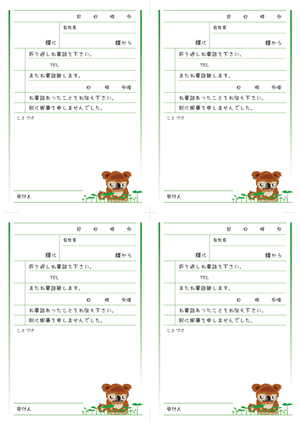 日々の感謝を込めて、 **\(#^∀^#)/**ハッピープレゼントです☆ ハッピープレゼントのコーナーから無料で印刷できますのでお気軽にお使い下さい** 【ハッピープレゼント】←クリックすると移動します ーーーーーーー☆☆☆ーーーーーーー キュールのデザインは(^∨^)こんな感じです☆ ▼見本(A4用紙に6面付け ▼見本(B5用紙 ▼見本(A4用紙 マロンの電話メモ帳は(<゜∀゜)/こーなりました☆ ▼見本(A4用紙に4面付け (= ̄∨ ̄=)いつもありがとうございます** 次の予定はキュールの便箋です(^∨^) ランキングに参加しています☆ 押してくれると嬉しいです/(^∀^)/**♪ よろしくお願い致します** にほんブログ村