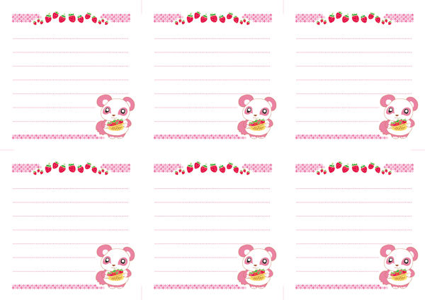 無料で印刷できるので、 (=^∪^=)どうぞお気軽にお使い下さい** なお、印刷はぼくのホームページの【ハッピーコーナー】からできます** 【ハッピーコーナー】 ◀クリックすると印刷できる場所に移動します。 見本はこんな感じです/(^∀^)/**♪ ▼見本(A4用紙に6枚付いています) ▼見本(B5用紙) ▼見本(A4用紙) 時間を見て、 (#^∀^#)次はチャンプーの便箋を作ってきたいと思います☆ ありがとうございました**