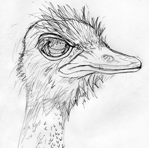 こっちのダチョウはシャープペンで描いてみました。