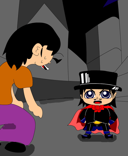 ウォォォ〜〜ン (女の子)なっなによぉ! (ドラキュララ)魔王様よりこの世を闇にするよう命じられたのだ! (女の子)な〜んだ、こんな時間にどうしたのボク?まいご? ランキングに参加しています。 押して頂けると励みにしてがんばります。 よろしくお願い致します。 にほんブログ村
