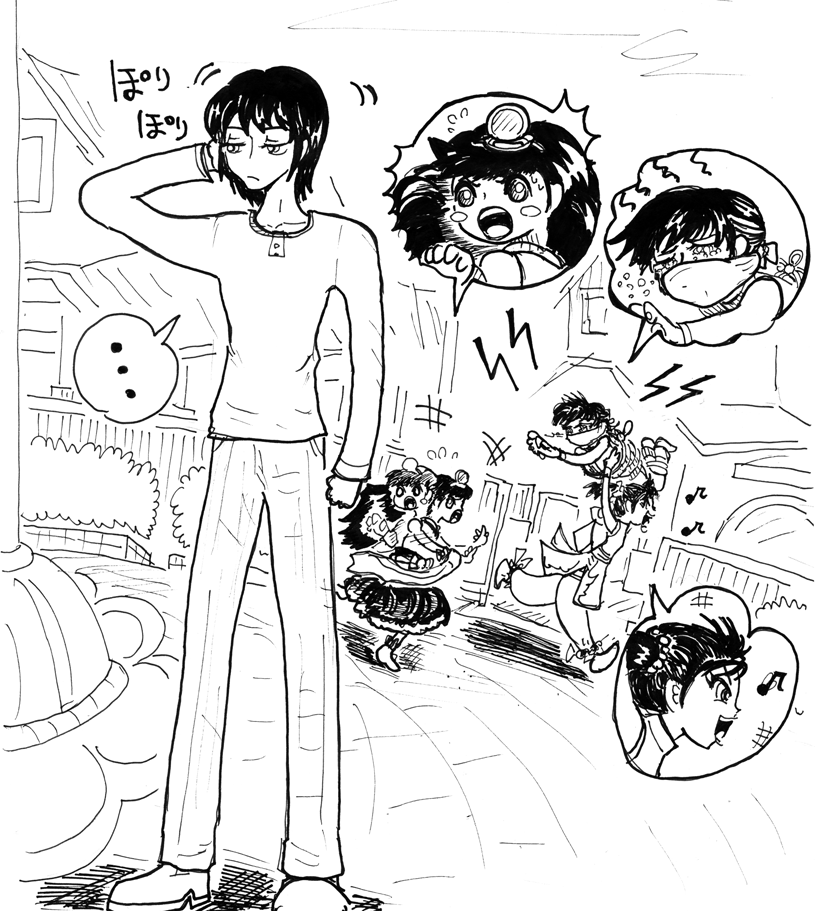 エディタサイトの友達の一人、秀一郎さんのキャラで、「織姫」左から二番目の女の子です。 秀一郎さんのブログは少々アダルトなところがありますが、絵の腕は確かです。 360度のフィギアのような角度で女の子を描く事ができます。 絵の質感も透明感のある不思議な肌質、丸みある絵が素晴らしい作品です。 よろしければ、その腕を見に行ってみてください。秀才です。 http://takegami.exblog.jp/ エディタサイトの友達の一人、葉鳥さんのキャラで、「バンにぃ」左から一番目の少年と、「ルッ君」左から三番目、とてもかわいいから連れ去られそうてしまいそうになっています。 葉鳥さんのブログは面白いです。 絵を描きながら日々の生活を生きる、絵を描く人の人生を見せていただけます。 絵の特徴は活き活きとした絵を描き、人間模様を創造させてくれます。 だから漫画を描かせたら、良い才能となりそうです。 よろしければ一度覗いて見てください。素晴らしい才能があるようです。 http://hanohane.cocolog-nifty.com/blog/