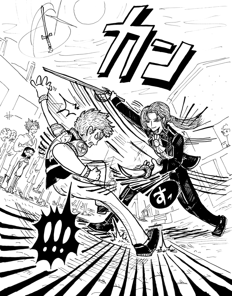 クリックすると拡大できます。 エディタコミュニティーのオリキャラの輪に参加すると、その中の他の人のキャラが描けます。 この髪の長い二刀流使いのキャラは、僕が仲良くしてもらっている、はるなつさんのキャラです。 はるなつさんは、女の子らしい心のこもった絵や小説を描いているので、特に女の方は遊びにいくと面白いですよ。 http://harunatunanamiharuka.blog46.fc2.com/ よろしければ一度お足をお運び下さい。 よろしくお願い致します。鈴木将也